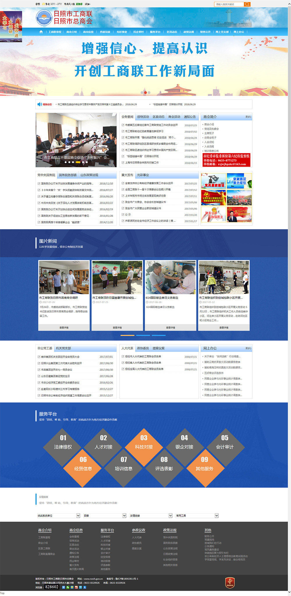 • 日照市工商業(yè)聯(lián)合會是中國共產(chǎn)黨領(lǐng)導(dǎo)的全市工商界組成的人民團體和民間商會,1952年7月組織籌建,1953年8月正式成立。1967年1月停止活動,1988年6月恢復(fù)工作。 日照市工商聯(lián)共有會員6169個,其中企業(yè)會員4029個,團體會員125個,個人會員2015個。4029個企業(yè)會員按行業(yè)分布情況為:農(nóng)林牧漁業(yè)為309個,采礦業(yè)320個,制造業(yè)1528個,電力、熱力、燃氣及水生產(chǎn)和供應(yīng)業(yè)54個,建筑業(yè)320個,交通運輸、倉儲和郵政業(yè)85個,信息傳輸、軟件和信息技術(shù)服務(wù)業(yè)135個,批發(fā)和零售業(yè)390個