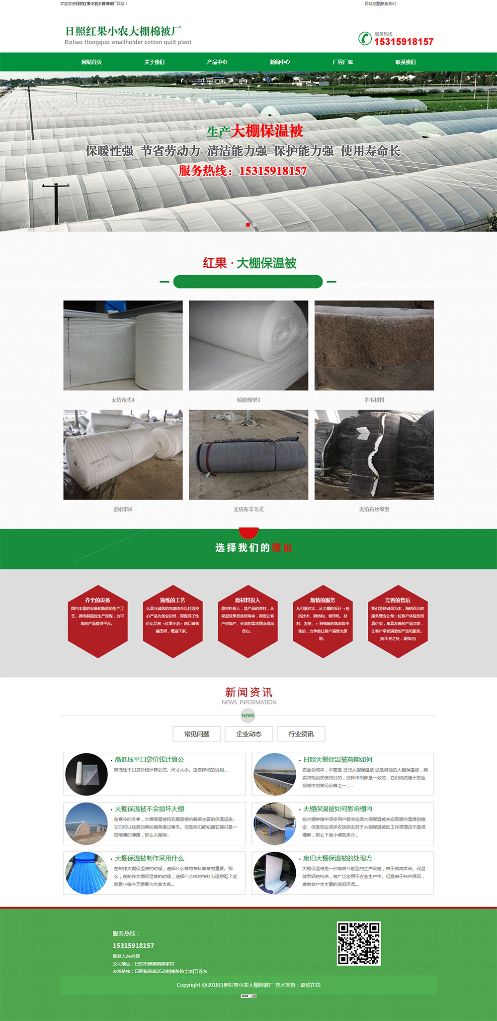 山東省日照市紅果小農(nóng)大棚棉被廠,開發(fā)于三農(nóng)一線,以市場需要為創(chuàng)業(yè)理念,借鑒于蔬菜之鄉(xiāng)壽光等地之三農(nóng)高科和省市級勞模以及各工業(yè)區(qū)精英,學習人之長,改善己之短,抱著長遠心態(tài)與全體工作人員一體合力,不斷升華產(chǎn)品質(zhì)量。讓客戶滿意才能實現(xiàn)我們的創(chuàng)造價值,才能在同行業(yè)具備競爭力,并加以完善售后服務(wù),讓客戶無后顧之憂。